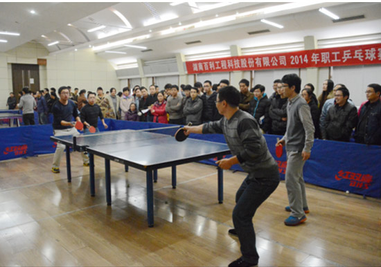 為豐富公司員工文化生活,增強(qiáng)員工體質(zhì),發(fā)揚(yáng)團(tuán)結(jié)、進(jìn)取的體育精神,由百利科技工會(huì)主辦,土建室分會(huì)承辦的“百利科技2014年職工乒乓球賽”于12月8日至19日在公司兵乓球活動(dòng)中心舉行。