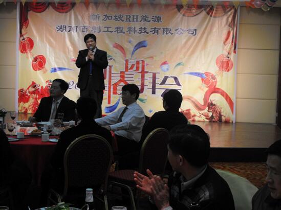 團拜會 在歡快的歌舞聲中拉開了序幕,“吉祥謠”、“好運來”、“和諧中國”等一個個精彩節目贏得在場員工們陣陣掌聲。會上公司總裁、黨委書記肖立明和新加坡RH 能源集團執行董事王立言分別致新春賀辭和發表感言。我們堅信在新的一年里,在公司董事會、經營班子領導下,在全體員工恪盡職守、辛勤工作下,百利的明天會 更美好!