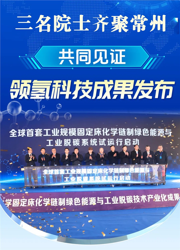 2024年12月18日,全球首套工業規模內熱式多級固定床化學鏈應用系統在常州領氫科技試運行,這標志著我國在化學鏈制綠色能源與工業脫碳關鍵技術領域取得重大突破,達到國際領先水平。中國工程院院士郝吉明、岳光溪、李陽以及多名教授專家學者及知名企業家現場見證。《常州日報》更是在頭版刊發要聞《全球首套“化學鏈制氫”系統落地金壇》,報道領氫科技全球首套“工業規模內熱式多級固定床化學鏈應用系統”啟動試運行。